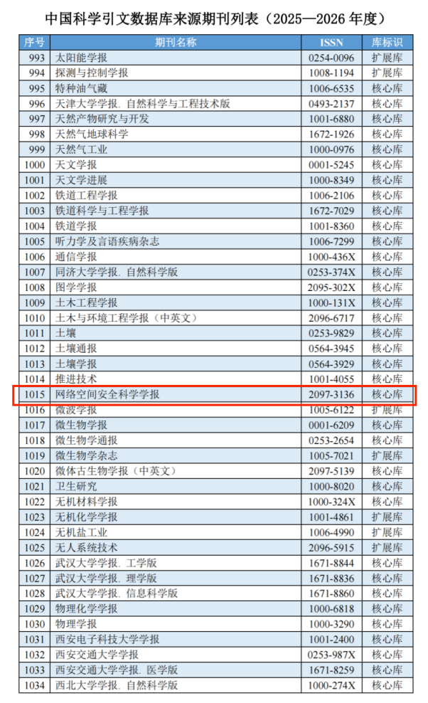 《网络空间安全科学学报》自2023年创刊,主办单位中国航天系统科学与工程研究院持续设立专项创新基金支持学报高质量发展。此次成功入选,既是集团公司与研究院长期深耕支持、倾注资源的成果,也凝结着全体编委、审稿人、作者、业界专家的鼎力支持与无私奉献。在学报创刊两年里,取得这一重要突破,标志着学报的学术质量得到了领域专家的认可,学术影响取得了一定的进步。它将为学报持续精进学术质量、拓宽国际交流视野、打造领域高水平学术平台注入更为强劲的信心与动力。